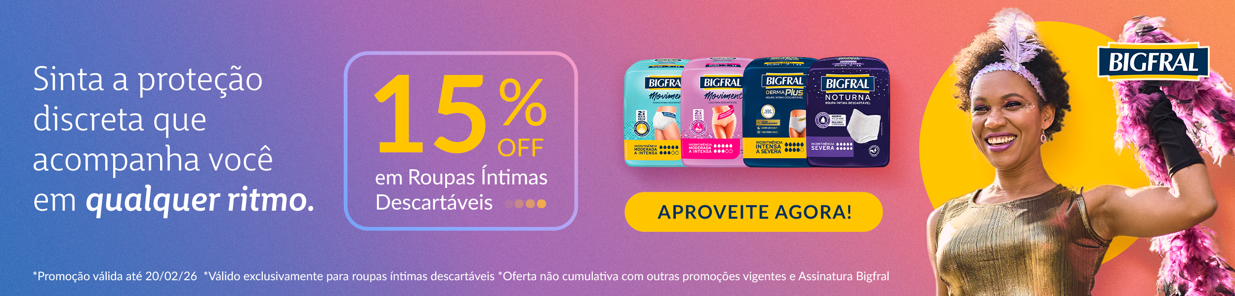 15% OFF em Roupas Íntimas Descartáveis, para você aproveitar cada momento com proteção discreta que acompanha seu ritmo em qualquer festa, bloquinho ou descanso em casa. Sinta a segurança e o conforto das nossas peças, pensadas para quem busca discrição, mobilidade e confiança no dia a dia e nos dias mais animados do ano.